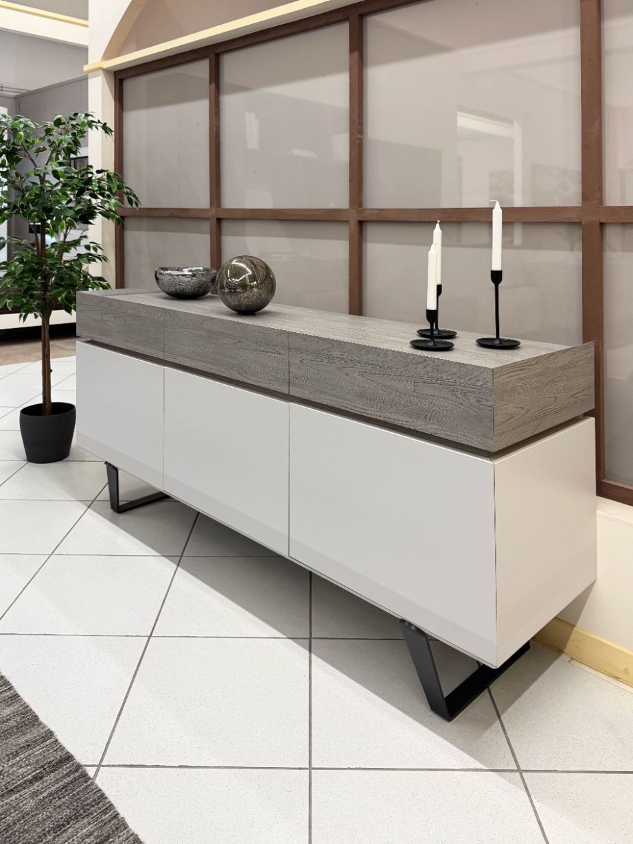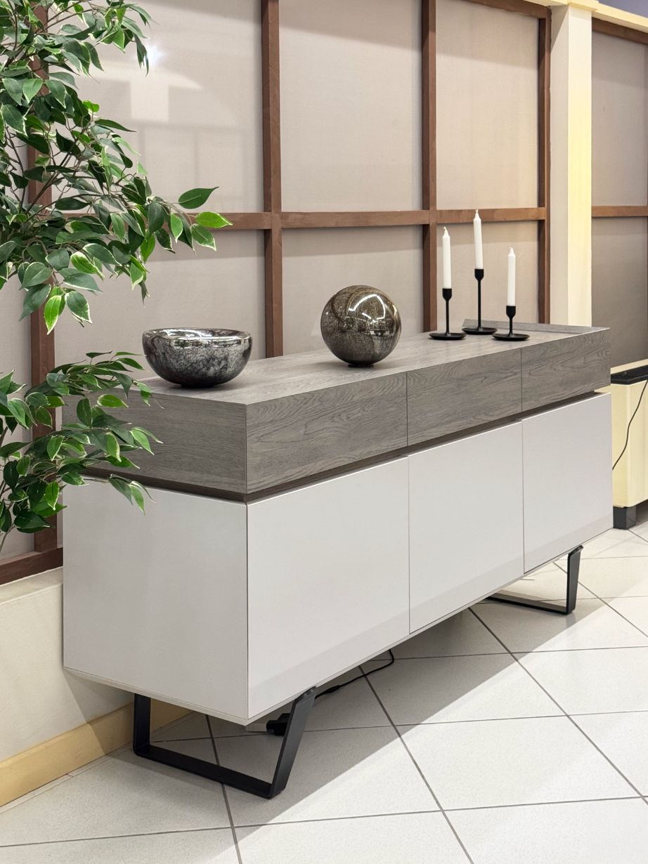 Capienza e linee pulite, ELECTA è la madia top di gamma della collezione vintage di Target Point disponibile il pronta consegna nella colorazione Castoro e Perla.