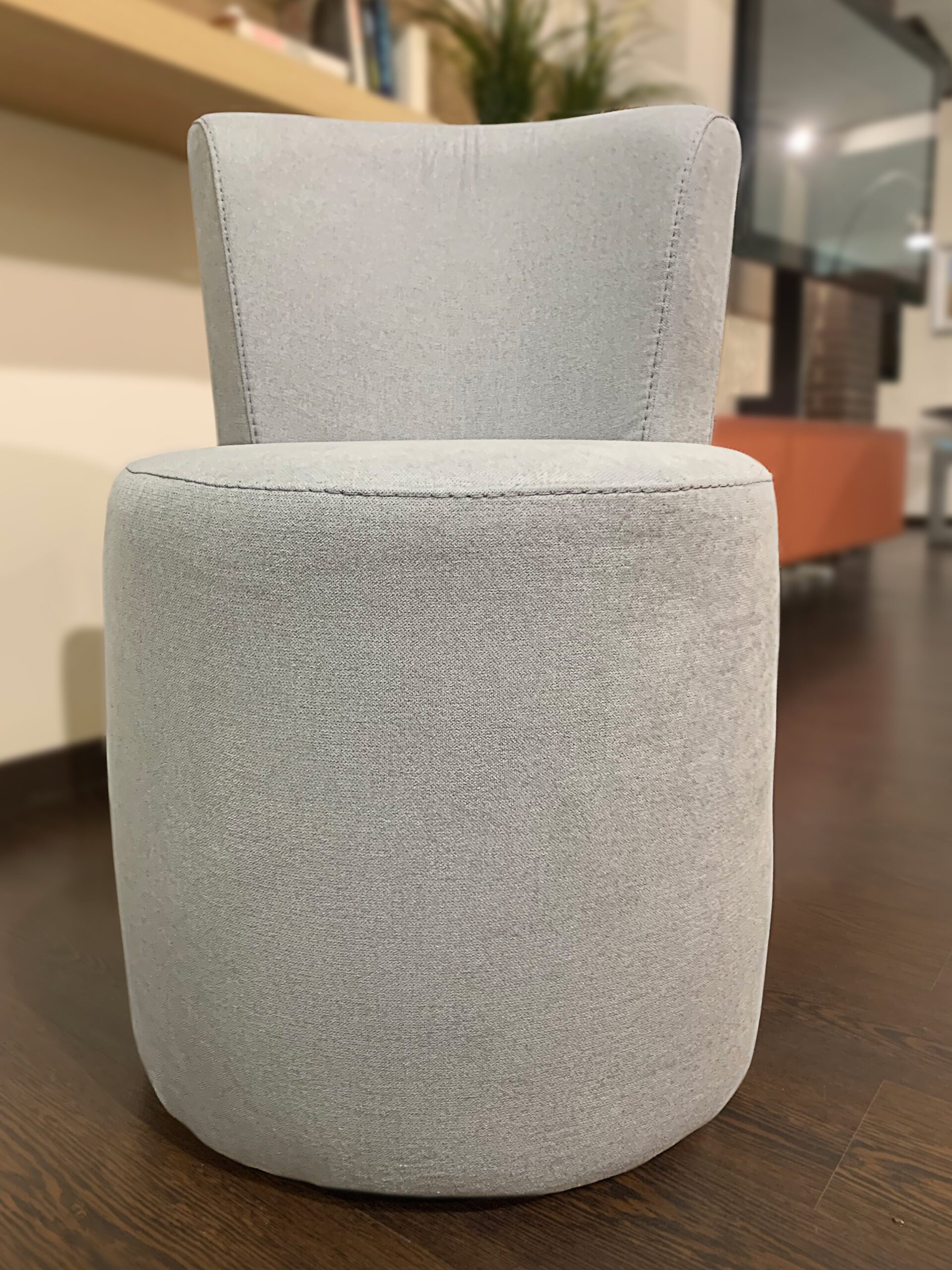 Pouf con schienale, rivestito in tessuto. Disponibile in vari colori e tipologie di rivestiemento. Ø 50 cm – H 48 / 80 cm